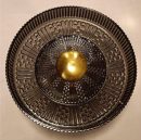 - Geometric Disc Design: A large, perfectly circular form defined by complex, radiating geometric patterns and fluting, giving it a strong Art Deco or vintage appeal.