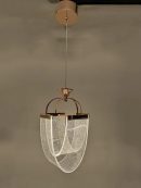 The Rose Gold Draped Mesh Pendant from MAYA LED is an exceptionally elegant and distinctive lighting fixture, designed to cast a soft, ethereal glow through its unique, fluid form. This captivating pendant features multiple layers of translucent, flexible mesh or patterned acrylic panels that gracefully drape and curve, creating a sense of movement and softness. The top structure, including the ceiling canopy, suspension hardware, and the delicate frame supporting the draped panels, is finished in a luxurious polished rose gold or copper tone, adding warmth and modern sophistication. The light source, likely an integrated LED, illuminates the textured panels from within, causing them to sparkle gently. This pendant is an ideal statement piece for adding fluid artistry and warm, diffused illumination to contemporary dining areas, sophisticated bedrooms, or intimate entryways, blending organic shapes with modern metallic finishes.